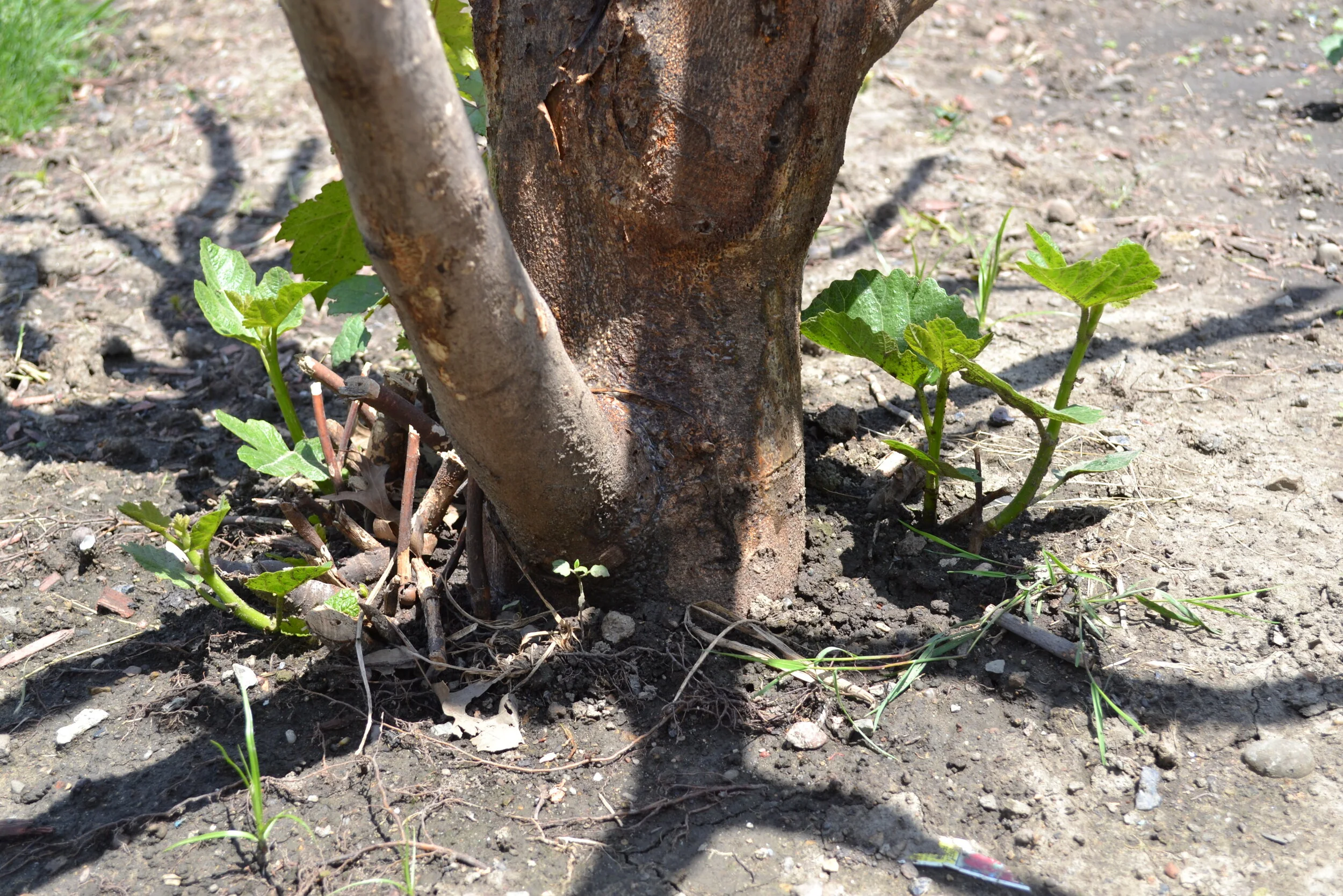 During our fig tree growing classes in Pittsburgh, we visit Rodolfo Ranallo who has grown fig trees since his arrival in the US in 1970. Rodolfo is from Ateleta, Italy in the province of L’Aquila in the region of Abruzzo. This was the first winter that he didn’t bury his fig tree. He had seen other trees in the neighborhood that were surviving without protection during recent winters and had decided to see if his might make it too. Unfortunately, this past winter proved to be unusually harsh with sustained freezing temperature that damaged or killed fig trees throughout the East. The photo above was taken in late April. He knew then that the tree had sustained some damage, but was still hopeful that it had only lost the ends of the upper branches. Any green that is visible in the photo is from the tree behind the fig. The fig itself showed no signs of life.