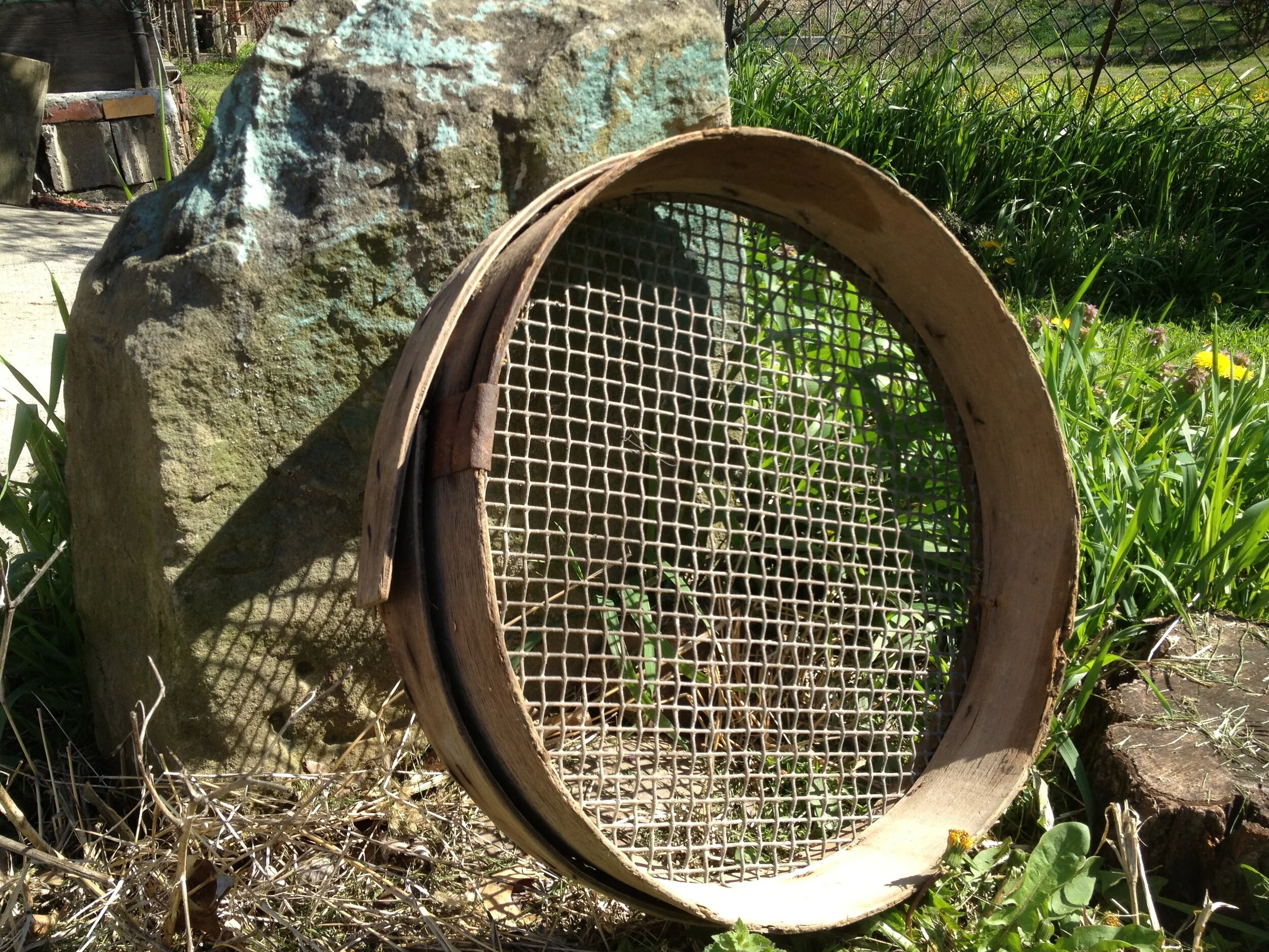 Mr. Ciccone explained that this sieve was used to sift small stones out of soil when fine soil was needed for starting seeds.